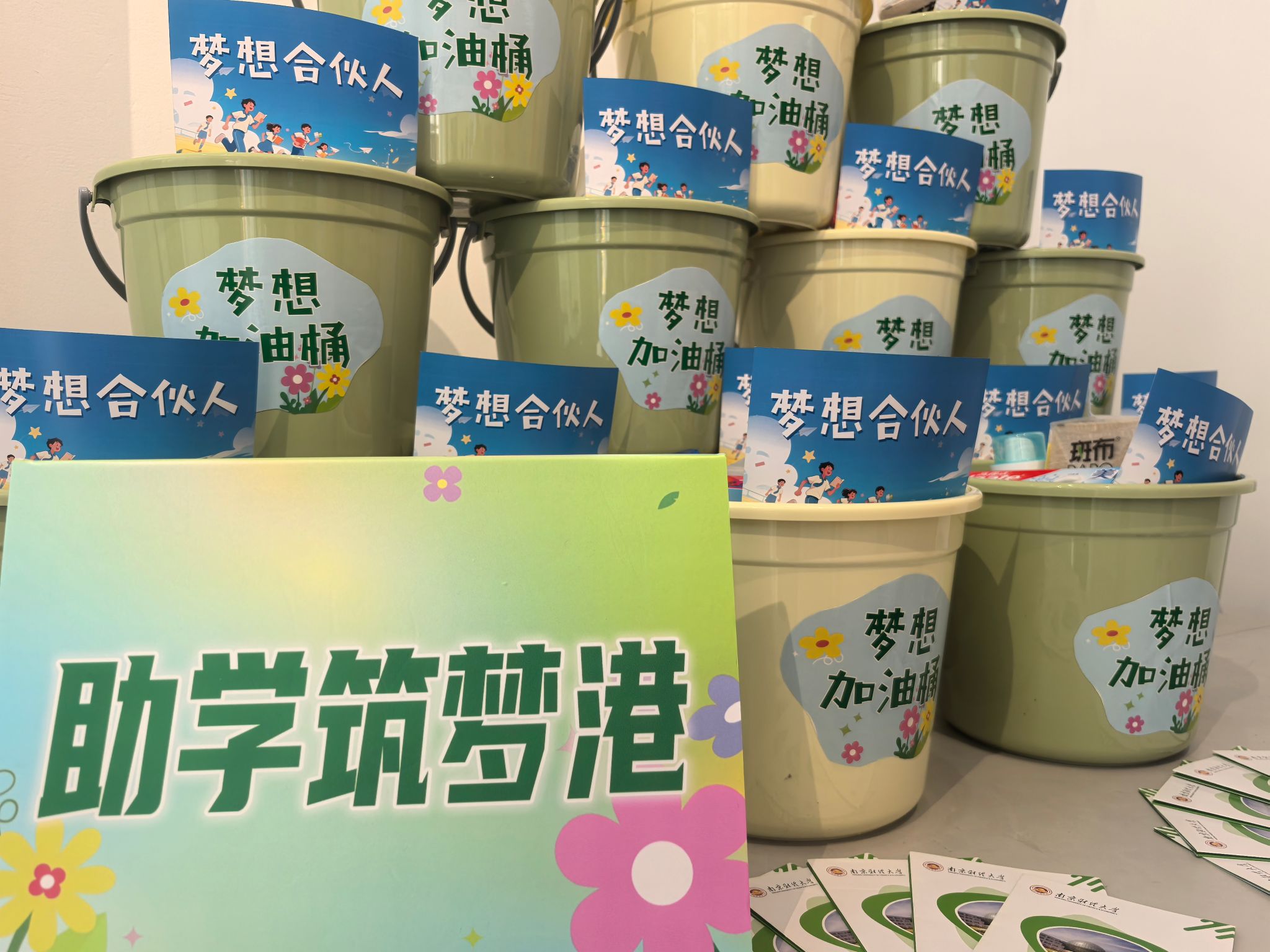 艺术设计学院为“绿色通道”学子准备了内含多种实用生活用品的“梦想加油桶”,还附有一张精心设计的“梦想合伙人”联络卡,卡片上,“朋辈助航员”“成长护航官”“信仰领航员”的联系方式清晰在列,庄严承诺将成为他们大学期间的坚实后盾。