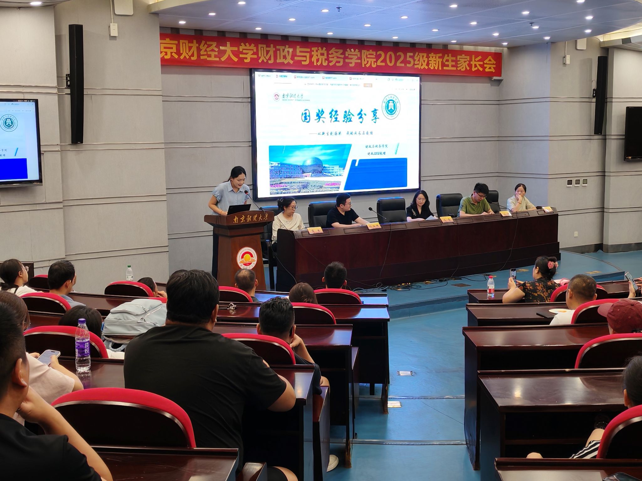 财政与税务学院准备了一份别具意义的“国奖领航礼包”,在新生家长会上,邀请国家奖学金获得者作分享,将宝贵的成长经验以“礼包”形式展现给25级新生及家长。在分享过程中,家长们认真聆听、频频记录,会后多位家长围着两位获奖学生继续咨询,现场气氛热烈。