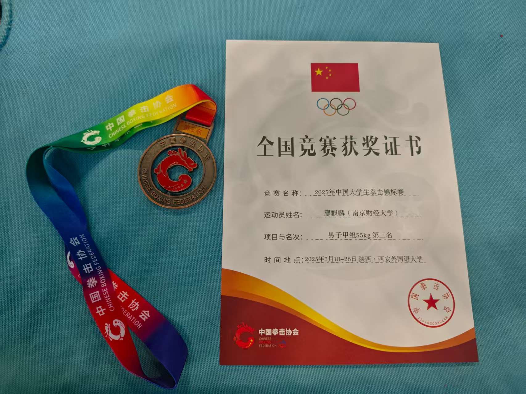bat365学子廖麒麟勇获2025年中国大学生拳击锦标赛季军