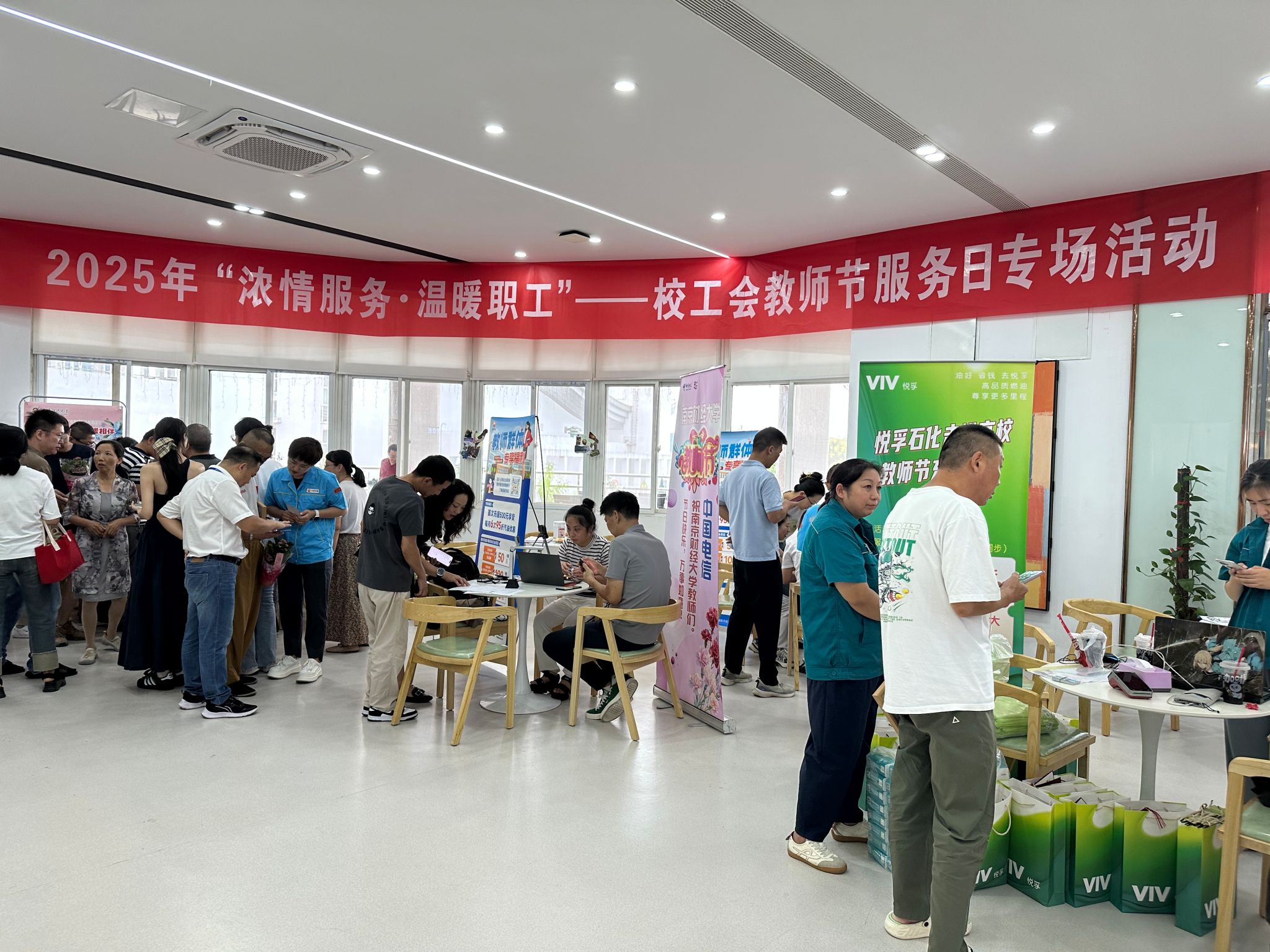 校工会和心理健康教育中心精心组织了暖心惠师“三送”和安心“三愈”活动。“三送”活动包括:送温暖——校领导走访慰问困难教职工;送祝福——发放祝福卡片以及盆栽花卉植物;送服务——组织企业进校园为教师提供专属优惠。“三愈”活动则是通过开展“心情杂货铺” “心灵回声谷” “快速压力自测”三个活动,分别对应“愈压力” “愈心灵” “愈健康”三大主题,为教职工减压赋能。