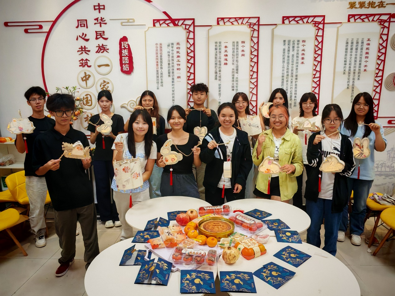国际经贸学院13个民族以及来自港澳台地区的学子齐聚一堂,分享不同地域、不同民族的习俗与特色;同学们结对协作制作花草纸灯笼,拼竹框、糊宣纸、贴图案……一个个点缀着兔子、莲花、明月等元素的特色灯笼陆续成型,灯光透过花草纸透出柔和的光晕,成为节日里独特又动人的记忆。