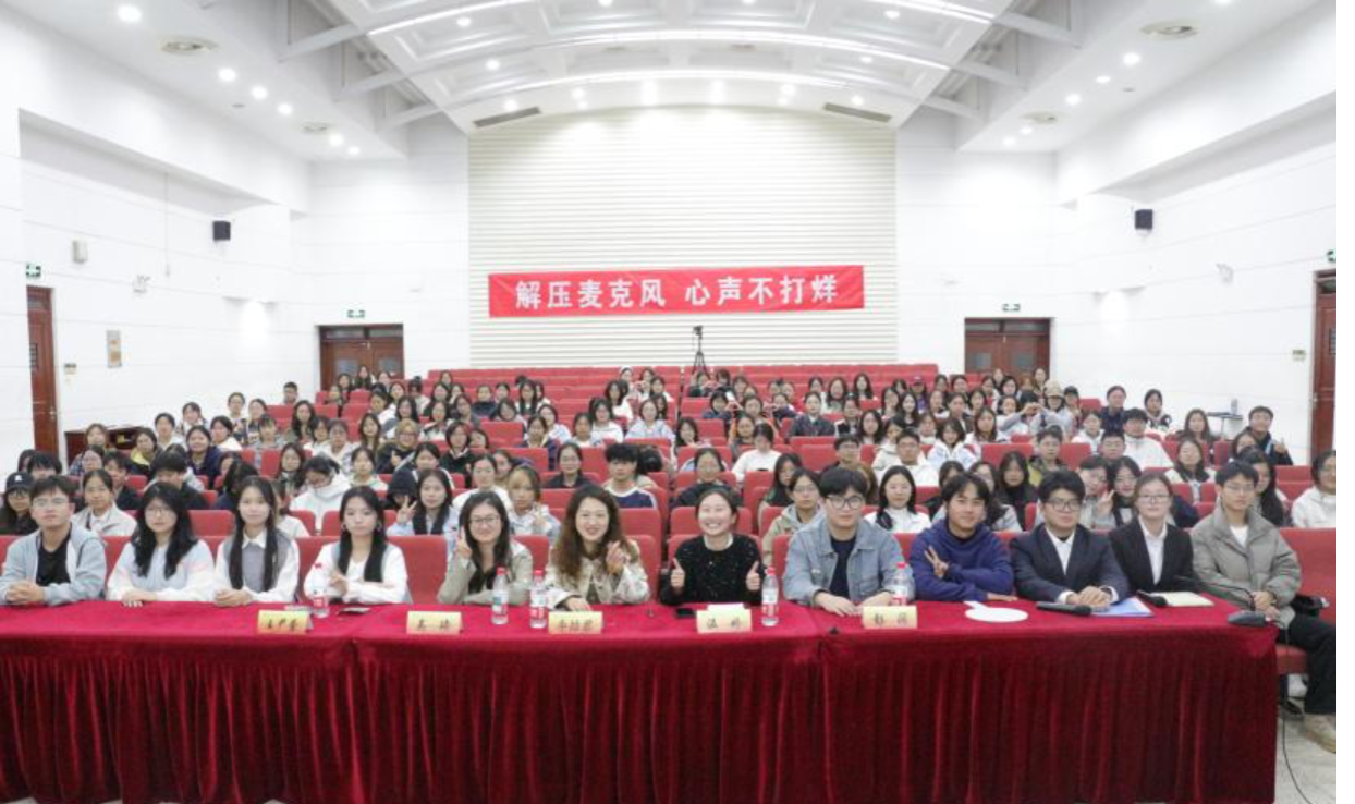 为进一步丰富校园文化生活,创新心理健康教育活动路径,10月20日晚,bat365在仙林校区德经楼报告厅举办“解压麦克风,心声不打烊”校园心理脱口秀大赛。校心理健康教育中心李喆君、专职心理咨询师吴琦,应用数学学院心理辅导员温娇、学生代表彭阔及上届心理脱口秀特等奖获得者王尹萱担任评委。来自8个学院的13支队伍同台竞技,用幽默解读青春,为现场百余名师生带来一场笑点与温度并存的语言盛宴。