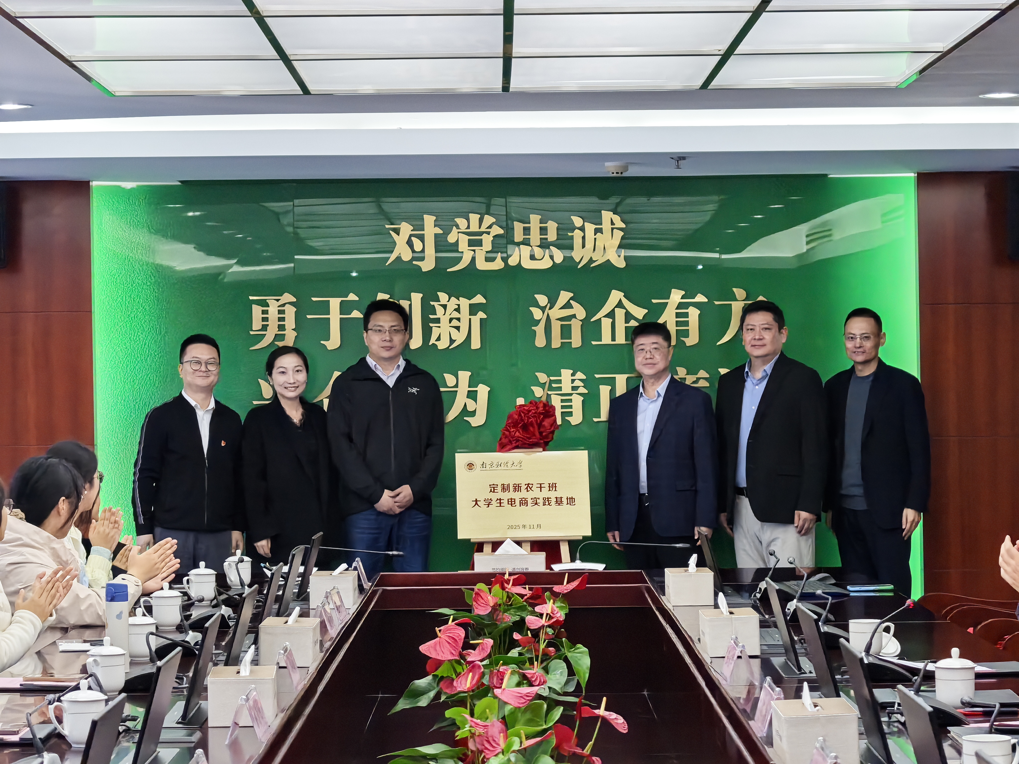杨清可副处长简要介绍了bat365新农干定制班的基本情况,对江苏邮政和南京邮政支持乡村振兴人才培养表示感谢,对省市两级公司在电商直播领域、助农产品进城方面作出的贡献表示赞赏。胡心淼副书记简要介绍了电商实践基地的合作共建设想,并围绕产学研融合、深化校企合作、人才共育等深入交流。