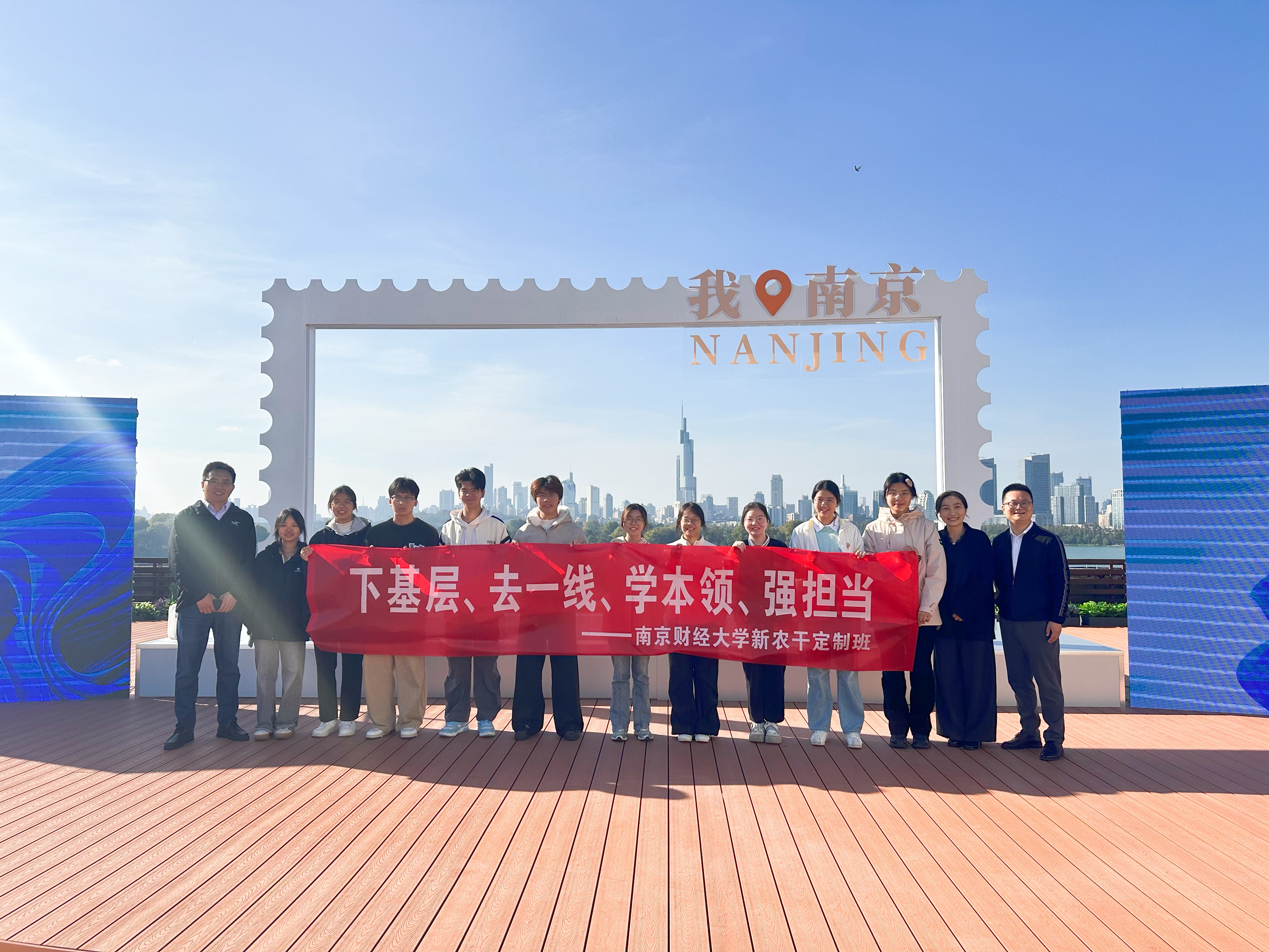 活动后,胡新蕲副书记带领定制新农干班学员代表,在南京邮政直播基地的“振兴邮我”直播间,与南京邮政、徐州邮政等平台主播一起参加了“青春邮记·‘苹’安启新程”直播活动。