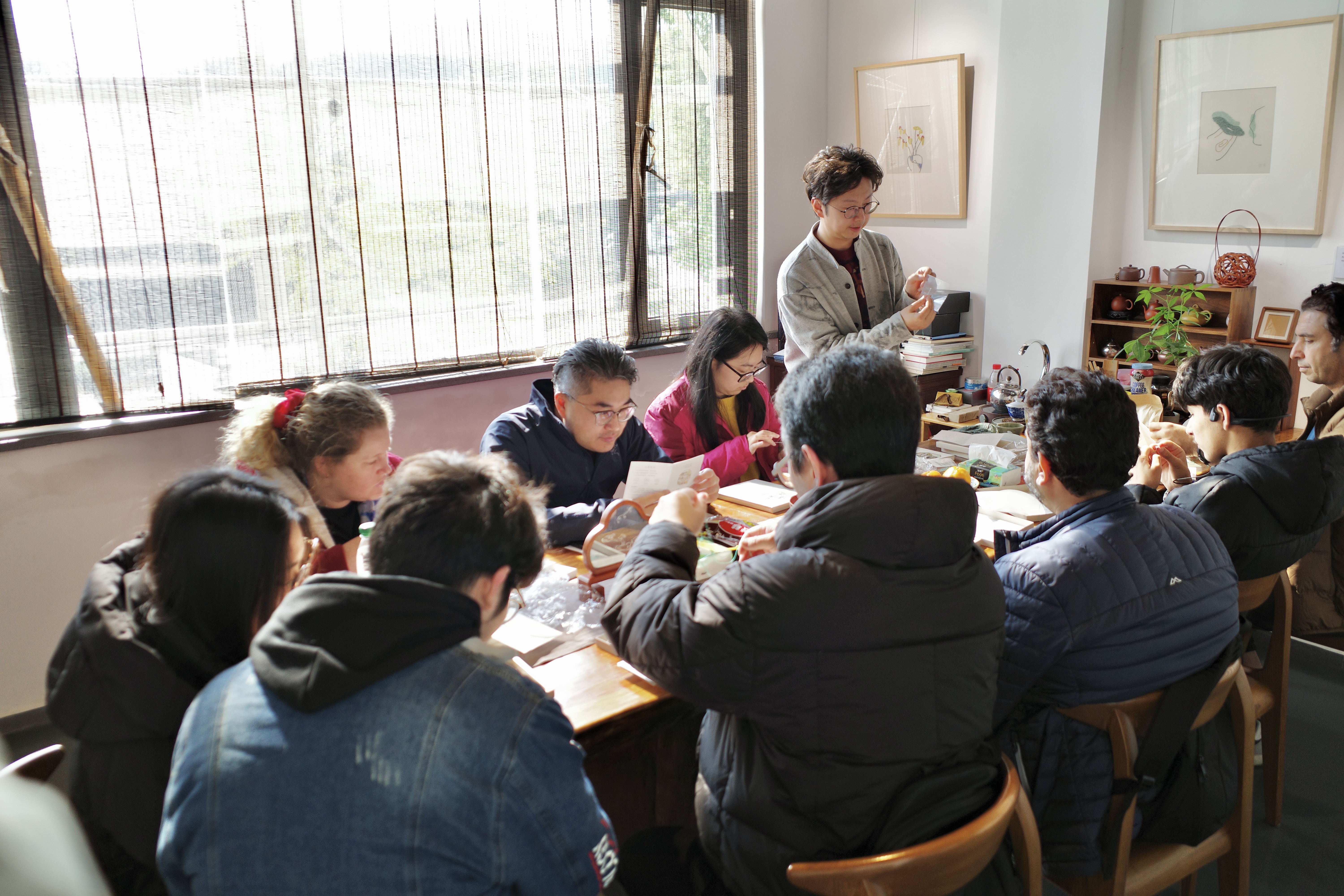 在手工DIY环节,梅西师生亲手拿起针线,体验刺绣的基础技法。在张雪校友的指导和帮助下,梅西师生顺利掌握了正确方法,顺利完成了作品,将简单的刺绣体验与苏州园林的秀美景致相结合,非遗的种子悄然落于心田。