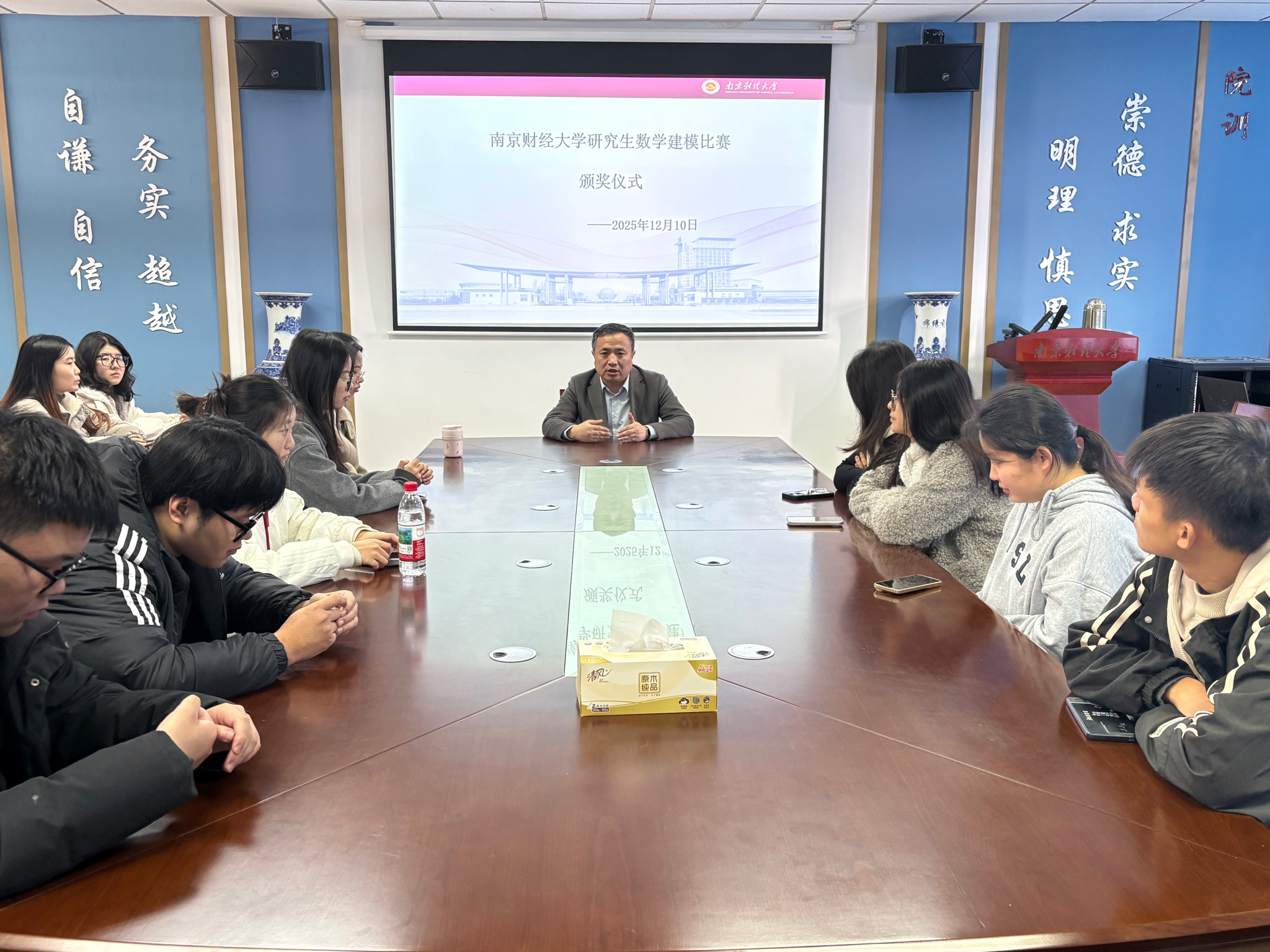 12月10日中午,大赛颁奖仪式在仙林校区德业楼508会议室举行。杨靖三老师为获奖团队颁奖。一等奖获奖团队分享了参赛感悟。杨靖三老师对本次比赛进行总结。他希望参赛队伍通过本次比赛积累经验、培养默契,为更高水平的竞赛做好准备。他分享了数学建模竞赛的实用技巧和策略,为同学们提供了重要参考。