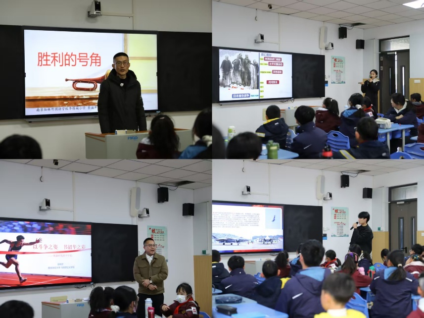集体备课会上,马克思主义学院副教授王萌、华侨城中学教师贾赛男、仙外华侨城小学教师张华娟围绕“落实党的二十届四中全会精神、推进‘生态文明建设’”主题,针对大中小学思政课讲授方法和教学理念进行交流学习。随后,小学生、中学生、研究生共聚一堂、集体学习。仙外华侨城小学教师蔡诚开、仙外华侨城中学教师陶倩、马克思主义学院老师徐梓彦,开展了以“斗争”为主线、从抗战英雄小故事到近代民族屈辱和抗争历史,最后到斗争精神的主题授课;马院退伍研究生邵帅作了“我的军旅生活”主题分享。大中小学生积极互动、踊跃发言。