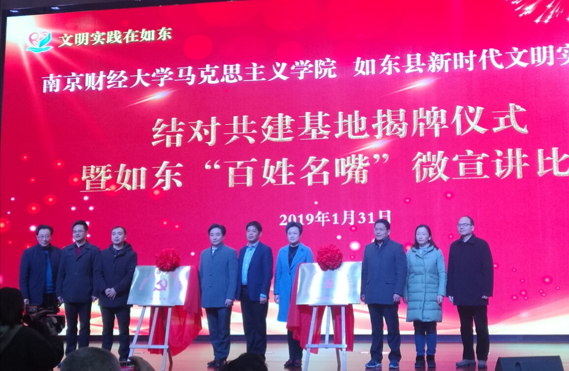 bat365官方网站马克思主义学院院长梅景辉教授和县委副书记陈雷共同为bat365官方网站马克思主义学院国情调研如东基地、bat365官方网站马克思主义学院如东县新时代文明实践中心理论传播结对共建基地揭牌。