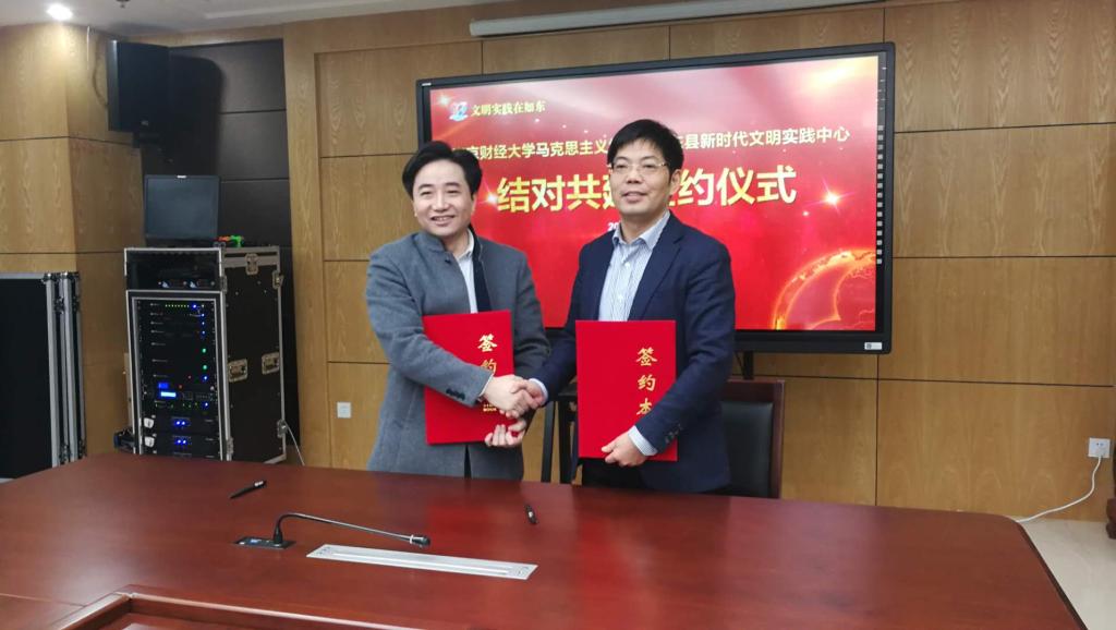 1月31日下午,bat365官方网站马克思主义学院与如东县新时代文明实践中心举行结对共建签约仪式。bat365官方网站马克思主义学院院长梅景辉教授与如东县委副书记陈雷代表双方进行签约。