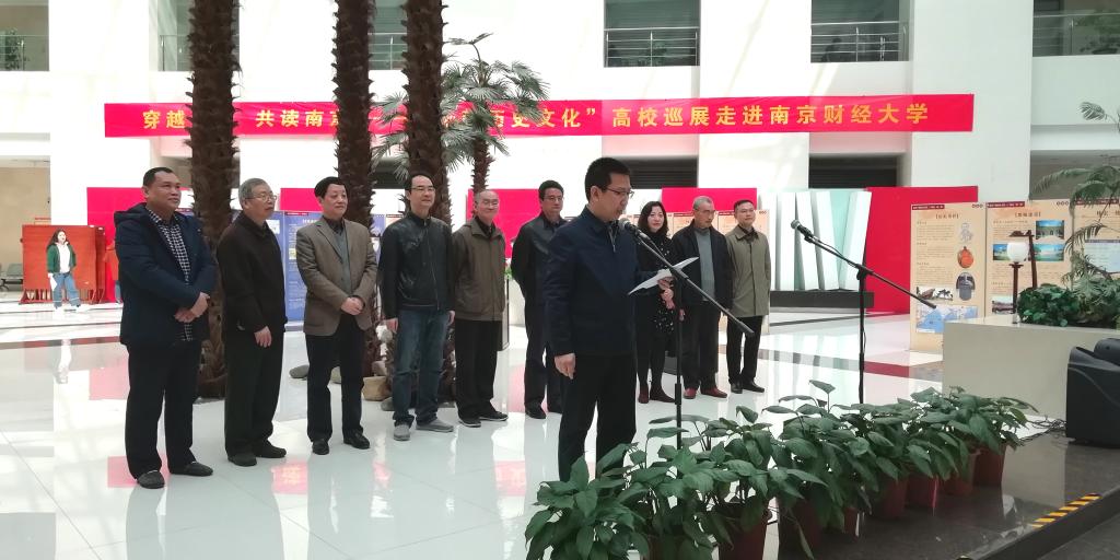 校党委常委、宣传部部长石奇致辞。石奇部长对南京市全民阅读办公室、南京十朝历史文化陈列馆的支持表示感谢。他说,南京作为“十朝都会”,拥有着厚重的文化底蕴和丰富的历史遗存。本次巡展通过历史的穿越与展现,为大学生们提供了一个认识南京、品读南京的窗口。bat365一直非常重视校园文化建设,积极传播中华优秀传统文化,加强学生素质教育,举办形式多样、丰富多彩的活动已成为学生教育的特色。本次活动也将继续助力校园文化建设。