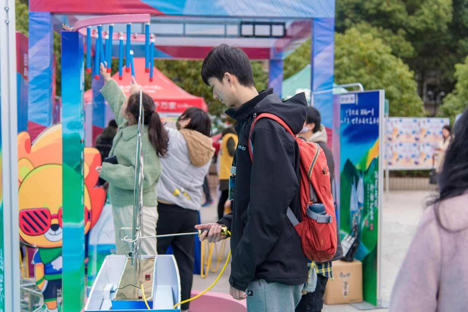 活动设置了“水线冲击”“眼疾手快”“节水问问答”等趣味互动环节,参加活动的同学要手持电流棒手柄,在音乐结束前,并在不碰触导电体的前提下安全通过迷宫,接着要在落地之前抓住随机落下的木条,成功后即可获得一瓶矿泉水并参与抽奖。组织这次活动的国贸院石同学表示,“我们想通过趣味标语和游戏的方式吸引更多的同学关注世界节水日,同时也希望这样一个不那么容易成功的互动过程,能够让参与的同学感受到水的来之不易,将节水、爱水的理念传达给他们。”成功通过游戏的刘同学兴奋地说,“我一开始是被这些有趣的标语吸引过来的,然后就跃跃欲试想要挑战一下游戏环节,不仅得到了趣味,还被普及了知识,比如生活饮用水的健康指标有酸碱度和总硬度,抽水蓄能发电能将用电较少时的多余电能转变为用电紧张时的高价值电能等,这些平时看起来可能枯燥的知识点在游戏中就变得易于接受起来。”