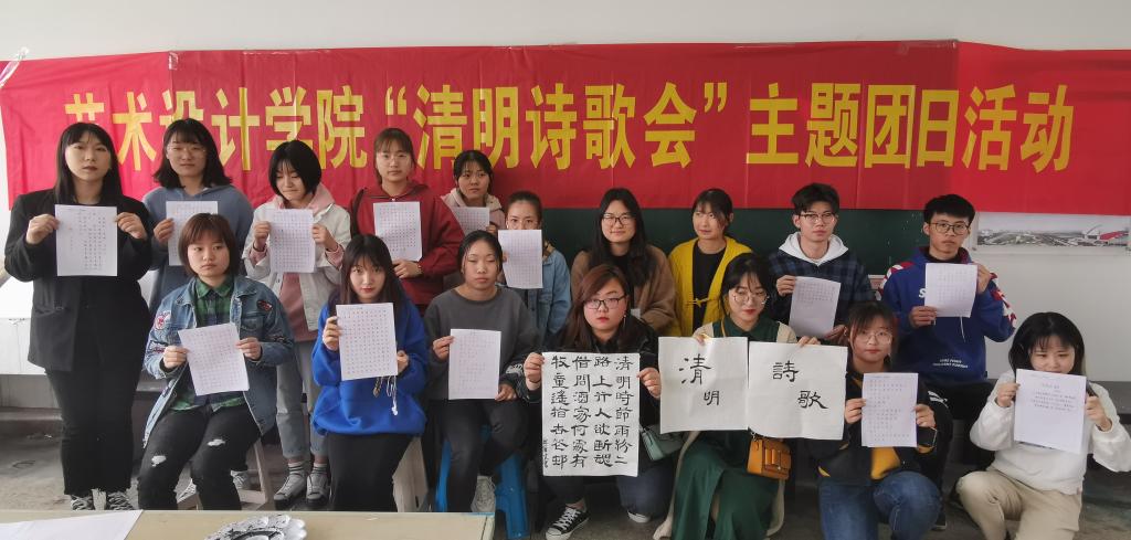 艺术设计学院组织了“唱红歌•怀英烈”信仰公开课,邀请学院基础教研室常晶老师指导学生学唱红歌《爸爸》《我就是你》。在学唱之前,常晶老师向大家介绍了歌曲创作的时代背景和歌曲背后的故事。常晶老师表示,“当我接到学院安排的信仰公开课主题活动任务时,我就思考如何将空洞的说教变得有意义,能真正感染到青年学生。我是学声乐的,了解每首歌曲的创作的感情联系,我希望通过这种方式,让青年学生走近老歌,走近红歌,学唱红歌,一同去感受红歌背后的时代印记和青春热血。”艺术设计学院还组织团员青年开展了“清明诗歌会”主题团日活动。青年团员们除了一起诵读着《清明》《清明夜》《清明即事》等经典清明诗词,还一起诵读《不朽》《海棠花祭》《青春中国》等缅怀革命先烈的诗作,并拿起笔,将这些经典诗作书写下来,与参加活动的同学共勉。
