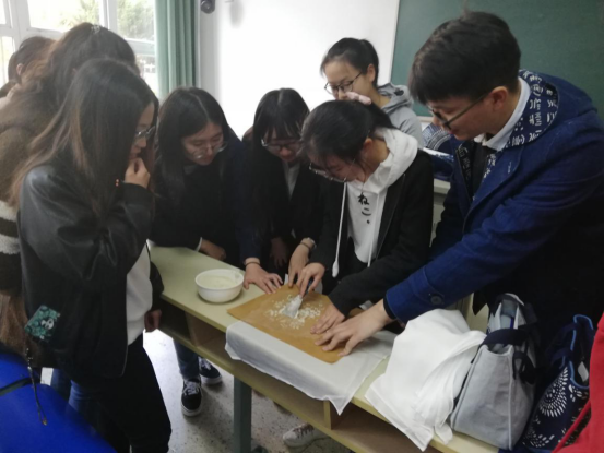 参与活动的法学1802班的周凌莉说,“老师温润如玉,讲话时给人感觉如沐春风。课程内容深入浅出,让我体验到了蓝印花布的美。体验过程中老师手把手教授经验,生动有趣,让我体验到了非遗文化的魅力。”郭亚娟感触很深,她说,“老师讲解了蓝印花布的起源和历史,还有一些珍藏的蓝印花布图片。这种传统的制作工艺带给我很大震撼,正如老师所说的,最好的传播是分享,我会把学到的东西跟大家一起分享,传播我们宝贵的非物质文化遗产。”