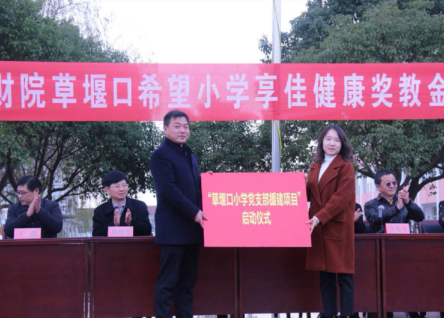 12月20日下午,经济学院党委联合南京中华财经进修学院等赴江苏盐城市建湖县草堰口希望小学开展公益活动,并举办经济学院、草堰口希望小学党支部援建项目启动仪式。民建bat365官方网站基层委员会主委、南京中华财院院长、经济学院统计系教师朱龙杰,经济学院党务秘书、支部书记黄晓娟,经济学院统计系教授白先春,建湖县教育局副局长祁萍、初等教育科科长裔晓涛,上冈镇草堰口社区党委委员、教育干事王鑫,镇、校其他领导,获奖学生家长,以及全体师生近千人参加活动。活动由草堰口希望小学副校长吴明春主持。