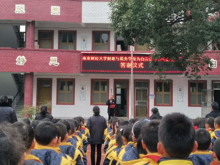 白云山小学特地举办了捐赠仪式,副校长程正才作了“向榜样学习,做自己的大英雄”主题讲话,感谢财税学院学子的义举,希望孩子们在书的世界里尽情遨游,健康成长。“爱心税”项目负责人、财税学院学生会主席杨璐遥同学说:“我们希望通过缴纳爱心税的形式弘扬无私奉献、助人为乐的优良传统,并向少数地区的女童们传递正确的性别观,让女童们在寒冷的冬日里充分感受到未来属于自己的无限可能。同时希望我们的四方书角真正做到走四方,复制到更多的山区小学。”