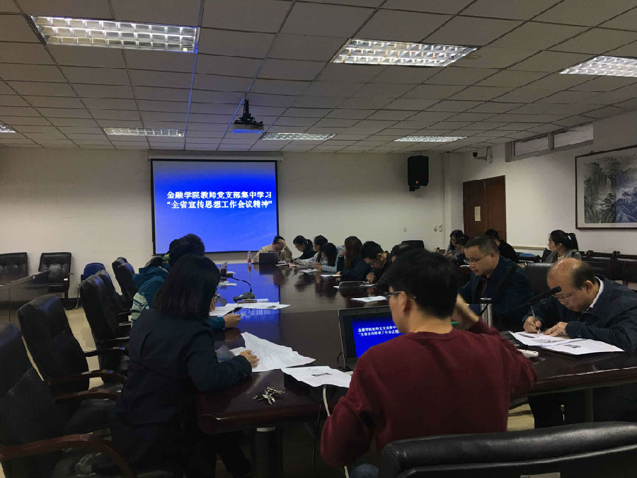 学习全国全省宣传思想工作会议精神是金融学院开展“党员学习日”的第一次主题活动。金融学院今后将在每周三定期开展各类学习活动,将“党员学习日”日常化、常态化、细致化,以进一步促进党员增强党的意识,敬业修德,奉献社会。