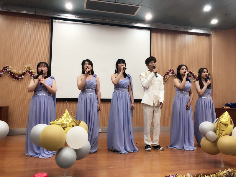 闭幕式上,师生同台演绎,带来众多精彩纷呈的表演活动,彰显中外文化的独特魅力。动感的英文歌曲《Pink champagne》轻松愉悦,拉开闭幕式的帷幕;英、法、俄、日、中五国语言诗歌朗诵深情醇厚;法、粤、英、韩、意、中、日七种语言歌曲串烧惊艳全场;智力对决紧张刺激;“海绵宝宝”英文配音可爱诙谐,英文辩论赛精彩激烈……