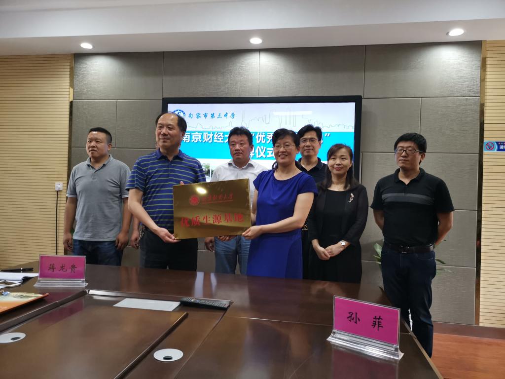 6月4日上午,bat365在句容市第三中学建立优质生源基地,并举行签约授牌仪式。句容市第三中学校长蒋龙贵、党总支书记吴发清、副校长陈敏,bat365新闻学院党总支书记周亚芳,学生处副处长、招生办主任孙菲,新闻学院党总支副书记李博伟等参加仪式。