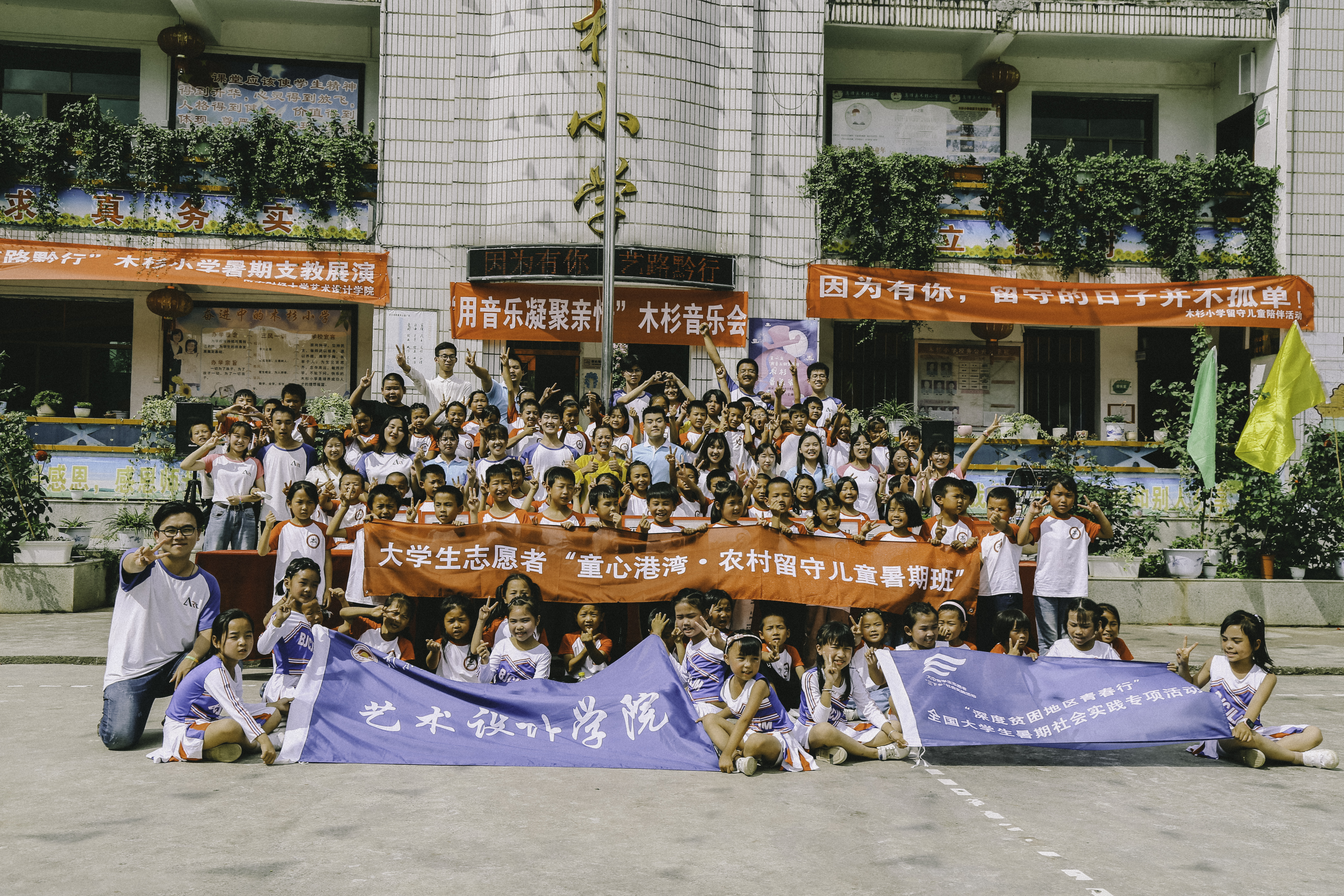 今年暑期,艺术设计学院“艺”路“黔”行——逐梦贵州支教服务实践团第五次来到位于贵州省息烽县石硐镇的木杉小学教学点,践行“明年再来约定”,用艺术陪伴山区留守儿童度过多姿多彩的假期,用多彩的艺术持续为山区留守儿童描绘多彩梦想。为纪念学院在木杉小学教学点的艺术支教活动开展五周年,支教团队成员集体创作了五周年纪念歌曲《艺路黔行》,用歌曲将“明年再来”的故事唱出来。在今年的艺术支教实践活动中,学院继续开展了书法、绘画、篆刻、音乐、舞蹈、魔方等课程,并带领留守儿童成功举办首届“乡村音乐会”,深受包括木杉村村民和木杉小学教学点留守师生在内的社会各界的广泛好评,学习强国江苏平台等媒体纷纷予以宣传报道。