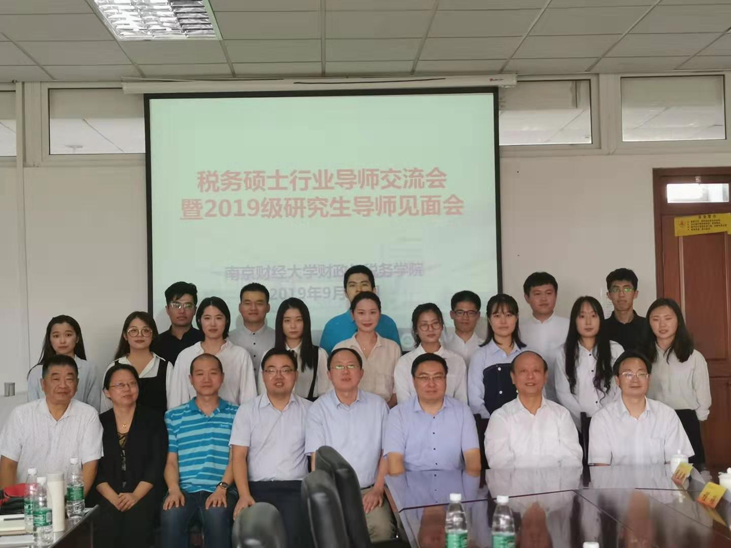 校内导师、校外导师并行,理论教学与实践相结合的“双导师”制度是专业硕士的有效培养方式。为进一步加深校内、校外导师的沟通,加强学生与校外导师的互动交流,9月21日下午,财税学院在bat365仙林校区德经楼408会议室召开了税务硕士行业导师交流会暨2019级研究生导师见面会。江苏省人大财经委江建平、江苏文投集团王国丰、江苏宿迁税务局吴健、中国邮储银行南京庐山路管辖支行于文国等行业导师以及学院部分党政领导和教师、全体19级税务专业硕士研究生参加了见面会。会议由财税学院副院长管永昊主持。