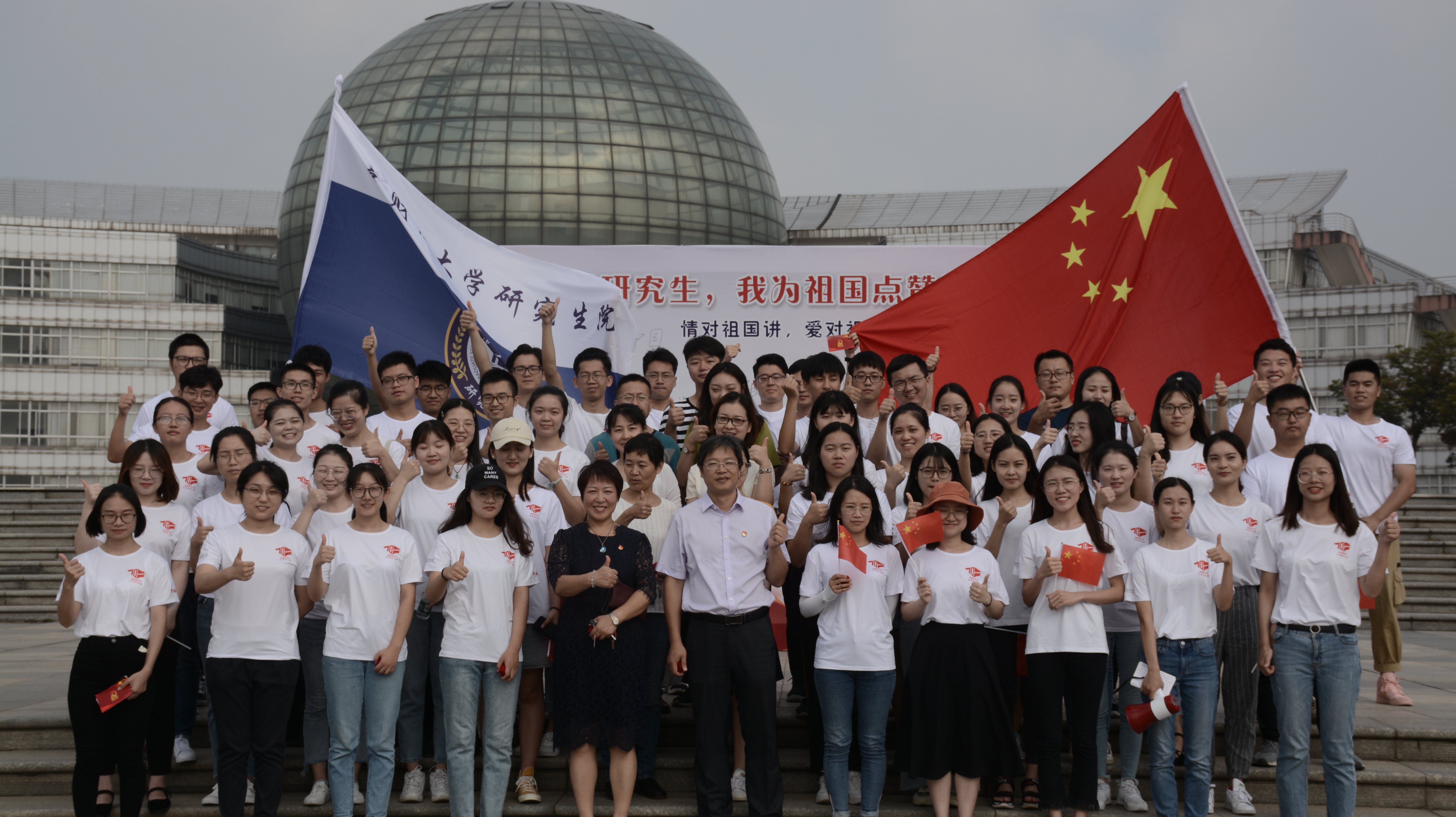 在随风飘扬的五星红旗中,“我是中国研究生,我为祖国点赞”环校行活动圆满结束。