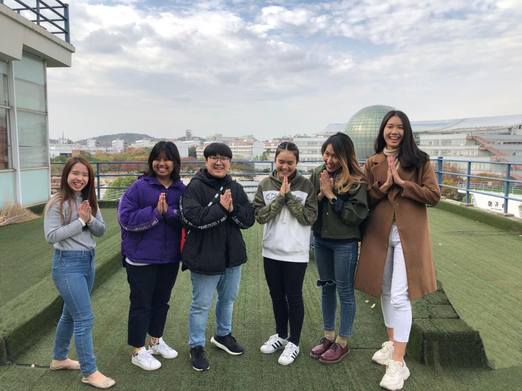 11月21日,世界问候日来临之际,国际经贸学院邀请了来自泰国、韩国、俄罗斯等不同国家的留学生在仙林校区德经楼三楼草坪举办了“世界问候礼仪沙龙”活动。