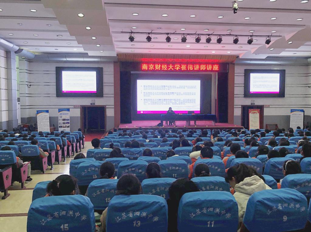 辅导员倪青青在泗阳致远中学报告厅以“高中生心理健康——情绪管理与调试”为题为高中三百多名学生作了关于心理疏导和情绪调节的讲座,她用通俗易懂的方式阐述了专业的心理健康知识和常见的中学生心理问题,指导学生如何辨识各种心理问题,以及面对心理问题时如何自助助人。根据高中生学习压力较大的情况,倪青青辅导员指导学生面对各种考试压力时如何进行有效的情绪调控,积极面对压力。学生处心理中心崔伟在泗洪中学阶梯教室以“如何与压力共舞——考前心理状态调整”为题为高中二年级五百多名学生作讲座,从专业角度风趣幽默地传授给学生如何面对高考压力。