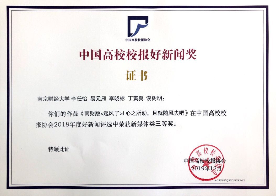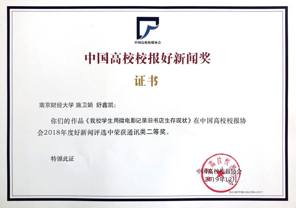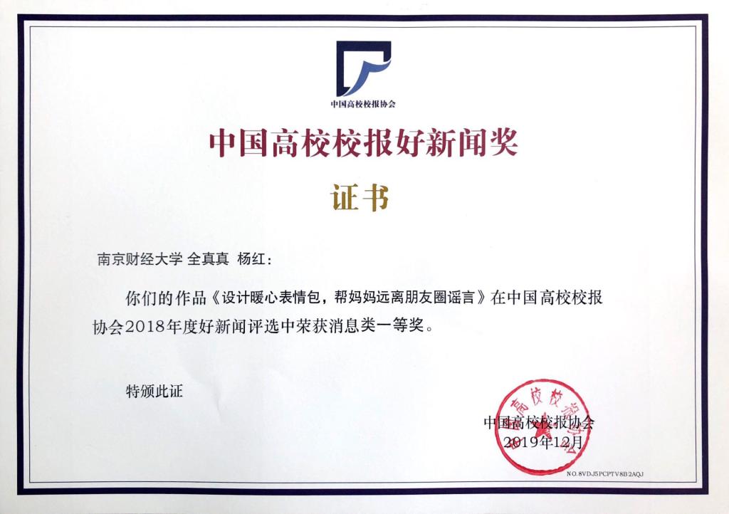 日前,2018年度中国高校校报好新闻评选结果揭晓,bat365校报报送的四件作品获奖。其中,《设计暖心表情包,帮妈妈远离朋友圈谣言》(作者:全真真、杨红)获消息类一等奖;《bat365学生用微电影记录旧书店生存现状》(作者:施卫娟、舒鑫凯)获通讯类二等奖,《知识堆砌培养不出复合型人才》(作者:李荣国)获言论类二等奖;《南财版〈起风了〉|心之所动,且就随风去吧》(作者:李任怡、易元雁、李晓彬、丁寅翼、谈树明)获新媒体类三等奖。