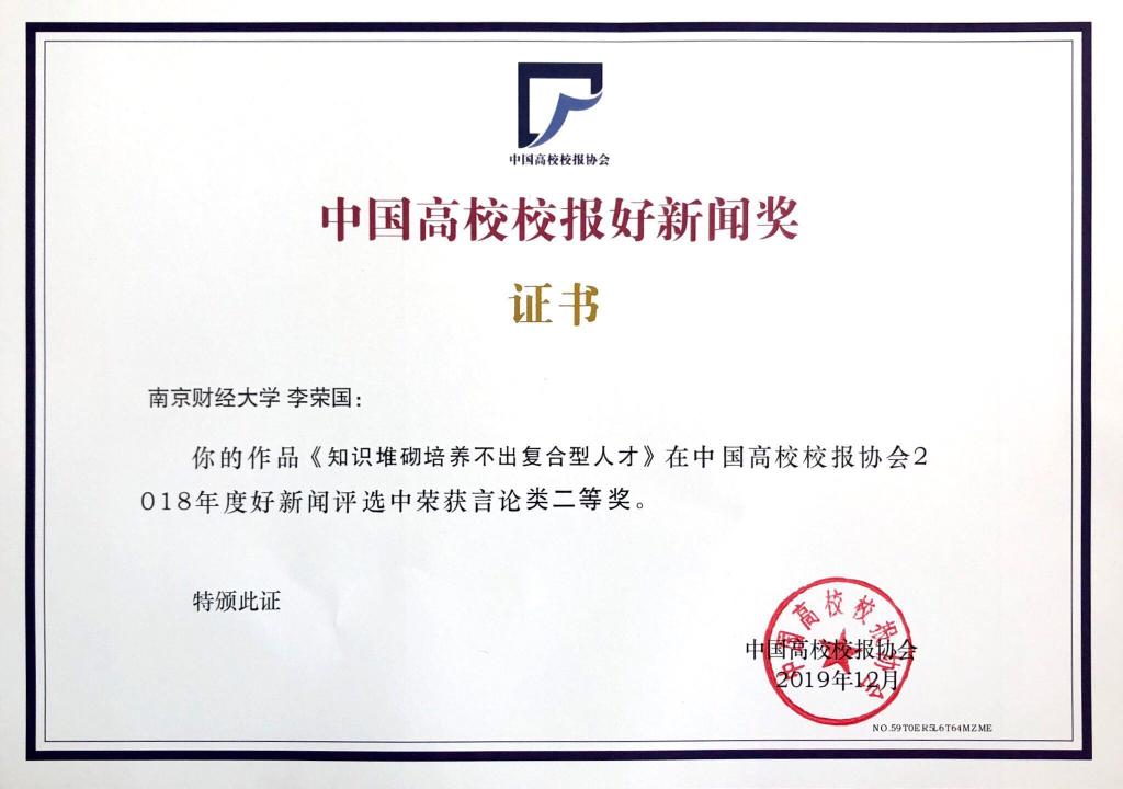 《知识堆砌培养不出复合型人才》获言论类二等奖