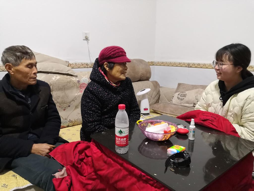 学生党员朱颖小组来到南京市浦口区老山脚下的大林村走访,在这里她们看到了农村环境的大变化,村里开展了垃圾分类,公共厕所进行了改造,党员家挂上了“共产党员”户的门牌,环境优美,群众生活舒心,基层党员主动担责作榜样,给同学们带来深刻启示。学生党员徐思敏小组到常德市桃源县龙潭镇同观山村,慰问了刚刚搬入新居的贫困户。学生党员计文艳小组来到盐城市阜宁县赵黄村与扶贫干部一起看望了村中贫困户,并送上了春节慰问品。学院党员潘疆微回到母校面向高三学生开展了习近平新时代中国特色社会主义思想主题宣讲,她结合日常生活的发展变化,以个人成长经历谈了对初心和使命的理解,强调了端正入党动机的重要性,为高中同学带来一堂生动的思想政治课。