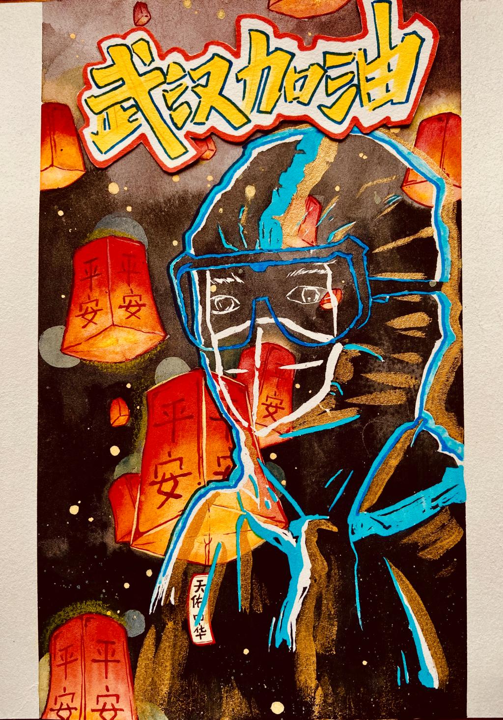 英语1802班陈蓉艺同学水彩画作品《武汉加油》