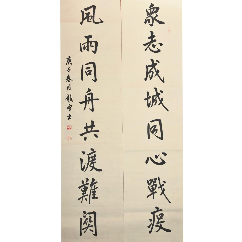 除此之外,学院学子们也用自己的方式为抗击疫情作贡献。英语1802班的陈蓉艺同学利用自身绘画特长,创作水彩画作品《武汉加油》,法语1801班的龚雪同学撰写书法作品“众志成城同心战疫,风雨同舟共渡难关”“武汉加油,中国加油”,她们用文字、绘画致敬抗击疫情第一线的勇士们,为抗击疫情加油祈福,用艺术传递爱。