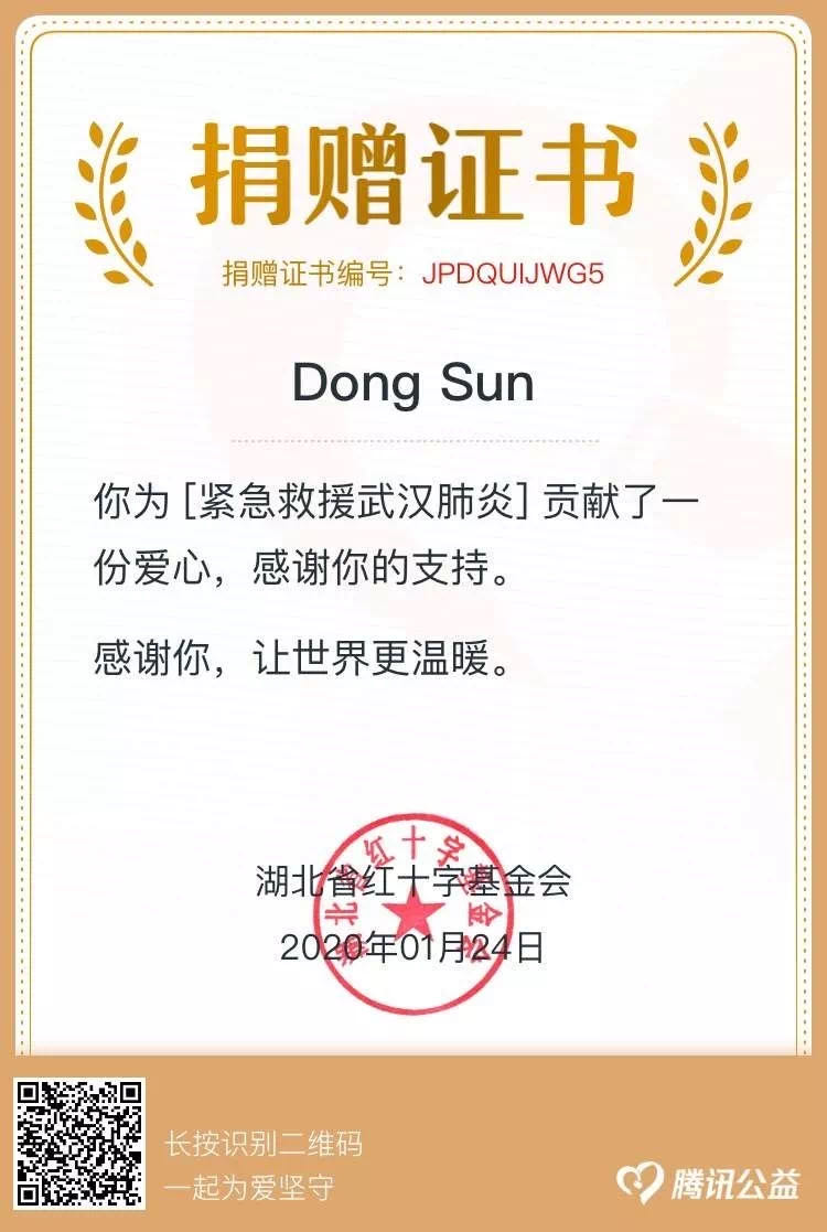 教授孙冬为抗击疫情捐款