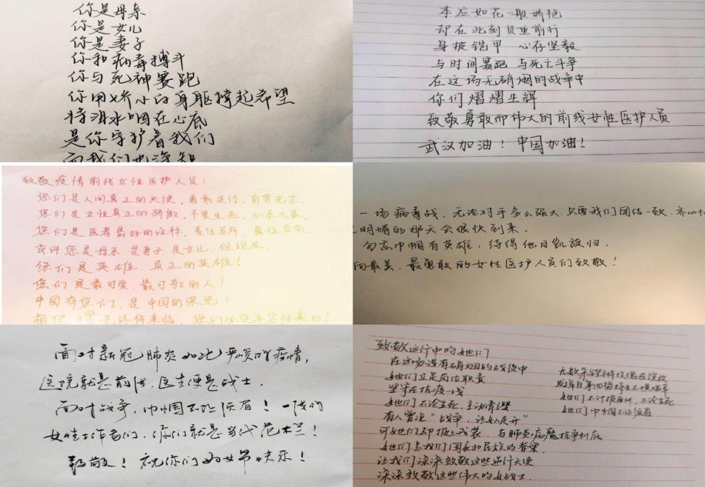 同学们手写祝福致敬一线女性医护人员