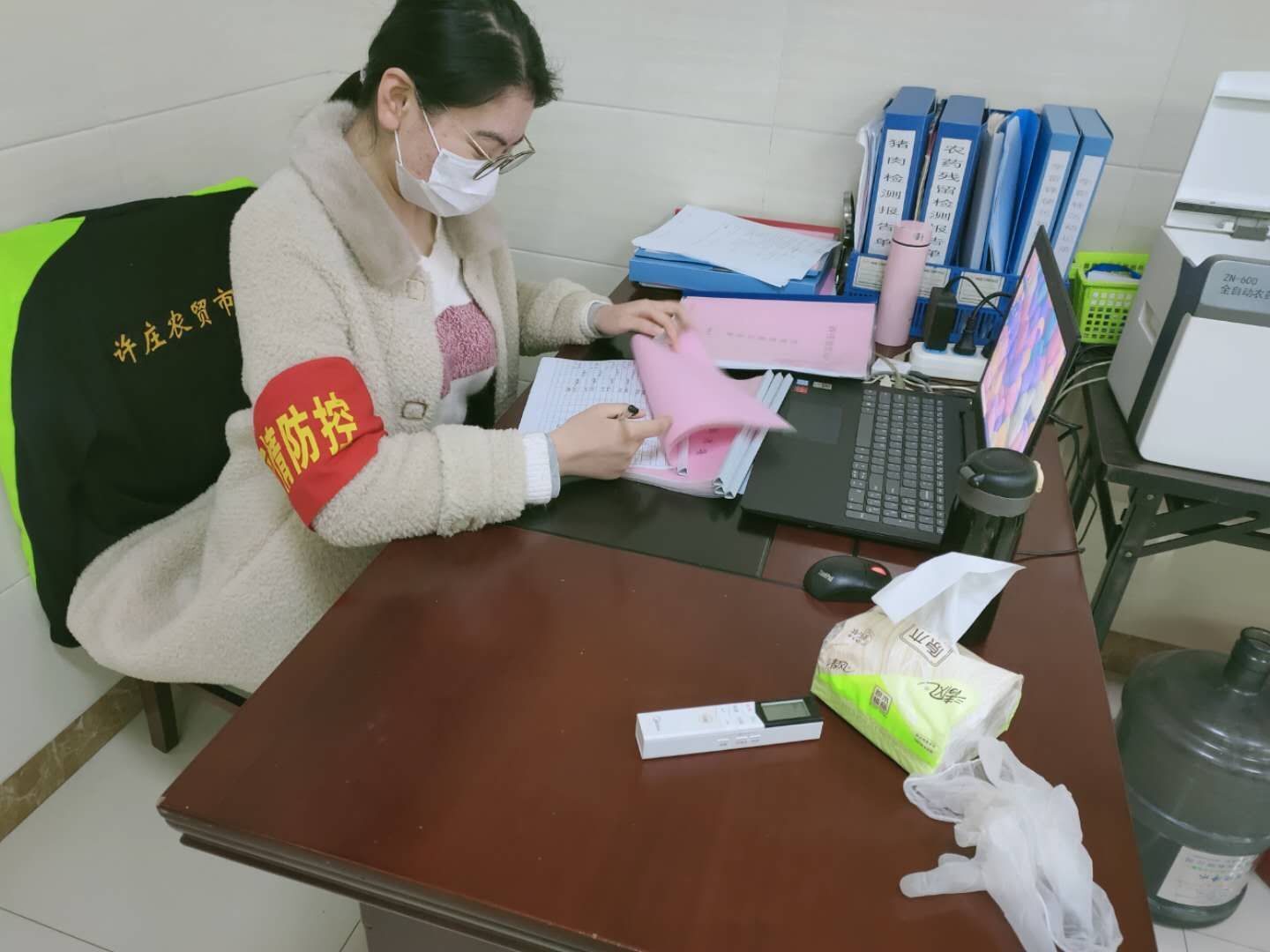几名学生党员,主动走上疫情防控工作一线。会计1651班学生潘华在小区门口设立的关卡处,为往来人员扫码、区域消毒、测量体温、进出登记等,以确保社区安全;会计1655班学生杨雨在农贸市场协助社区人员对营业商户进行走访,检查是否具备开业条件;物流1651班学生霍玉婷在村里发放防疫手册,帮助年龄小的孩子们戴好口罩;英语1652班学生傅加杰在执勤点询问进出人员,并协助民警维护道路秩序。作为年轻党员,他们努力发挥先锋模范作用,积极服务群众,真正在战“疫”中发光发热。