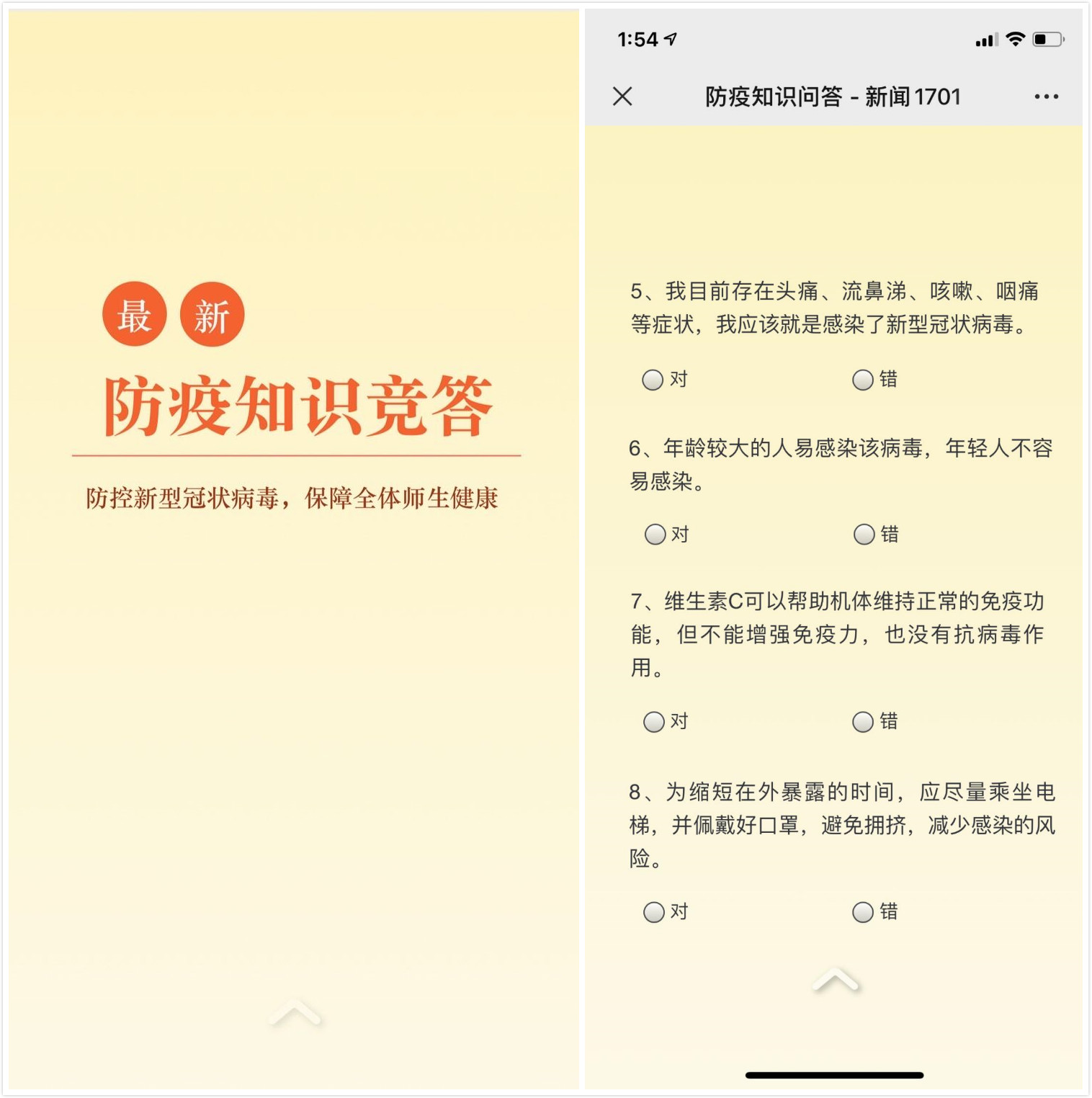 新闻学院高度重视疫情防控工作,根据学校工作精神,通过学院网站专栏、微信群、QQ群等多种线上平台对师生广泛开展了宣传教育,此次线上知识竞赛活动的开展,提高了同学们对防疫安全知识的认知水平,为复学返校准备工作夯实了基础。
