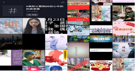 抗疫期间,公共管理学院19级学生认真遵循防疫指南,宅在家中的他们时刻关注疫情的发展动态,借助抖音平台,发起“南财公管院00后心中的抗疫英雄”话题,通过各种方法花式表白了自己在这场抗疫战争中的偶像。