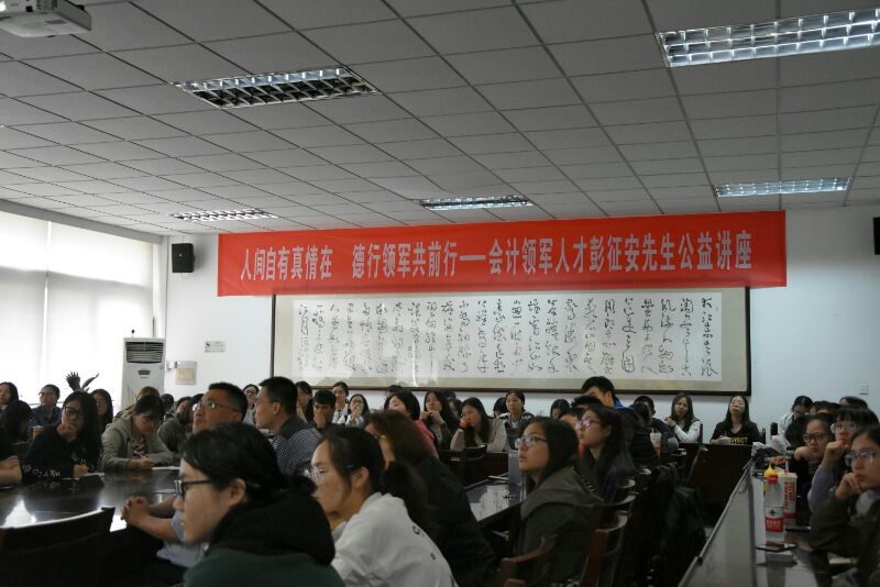 5月22日下午,应会计学院邀请,南京市政协常委、南京鹏宇联合会计师事务所所长彭征安在bat365仙林校区德济楼308会议室作了题为“人间自有真情在,德行领军共前行”的精彩演讲。会计学院教师与学生代表到场聆听,讲座由会计学院党委副书记刘颖主持。