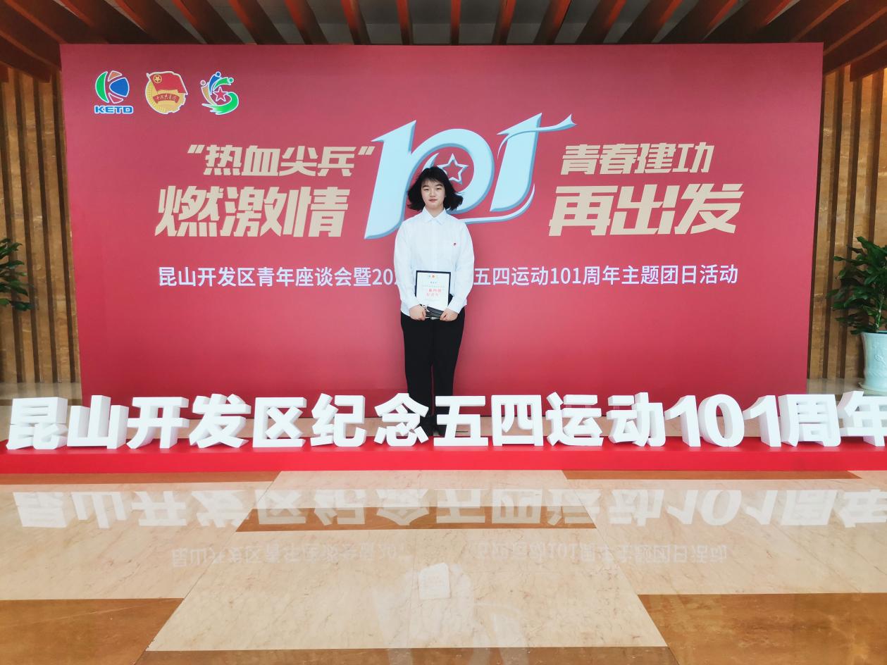 近日,法学院法学1901班的学生蒋璐平在昆山开发区“‘热血尖兵’燃激情 青春建功再出发”青年座谈会暨纪念五四运动101周年主题团日活动中,获评2020年昆山开发区“三新四创”好青年荣誉称号。昆山开发区领导、昆山团市委领导出席活动并讲话。昆山开发区机关、团组织负责人、各界优秀青年代表参加活动。