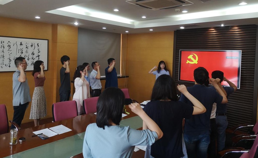 最后,全体党员面对党旗,重温入党誓词。通过本次活动,毕业生党员和青年教师都有深刻体会,机会和平台来之不易,一定要学会珍惜,不负韶华。