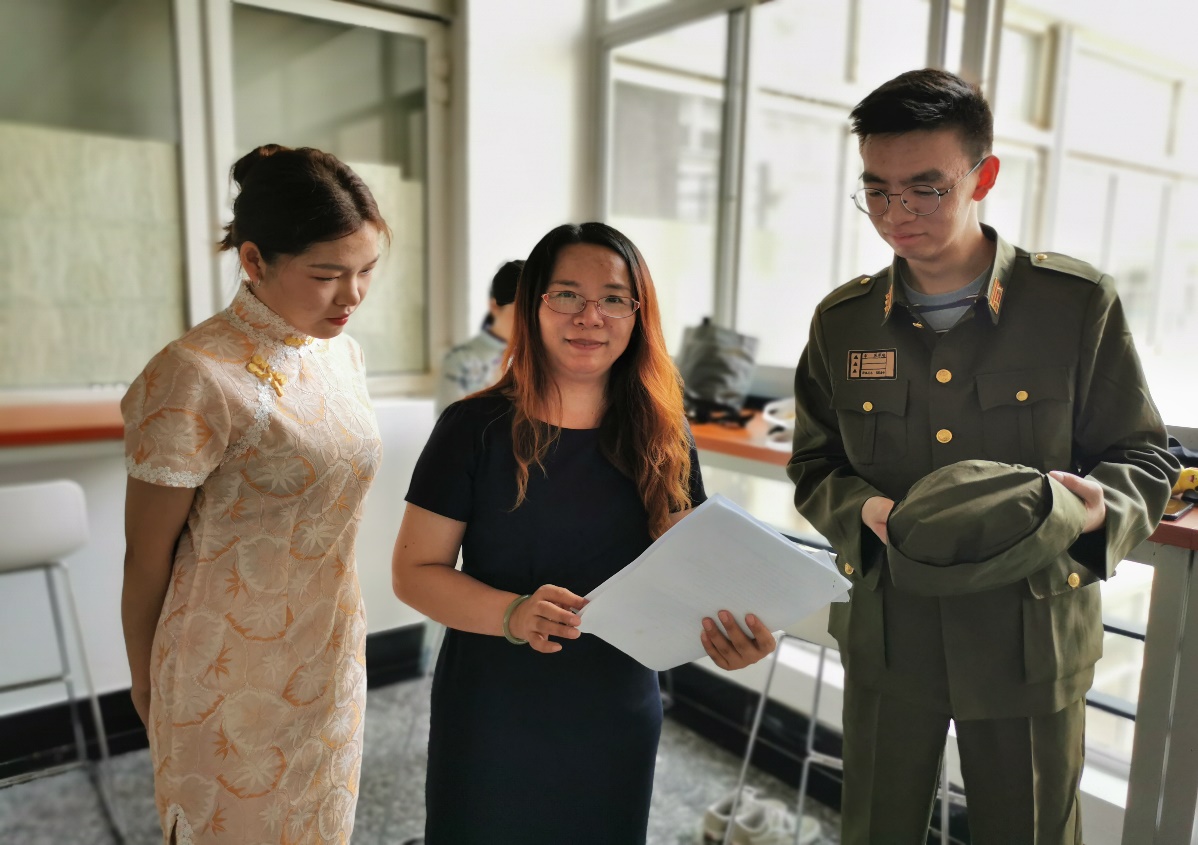 外国语学院开展了铭记历史、振兴中华“三个一”主题活动:编排一场抗日话剧、诵读一本经典原著、观看一部爱国主义电影。学院程水英老师、莫詹坤老师指导学生精心编排抗战话剧《风声》,并在仙林校区德正楼三楼草坪上演,在场师生被起伏跌宕的剧情和精彩的演出深深打动。学院青年教师党员和学生党员围坐在一起,开展了“诵读经典”读书分享会,分享近期阅读的“四史”,畅谈理想与行动。学院部分教工党员和学生一起观看了爱国电影《建国大业》,学生唐妍分享感悟,“‘中国人民从此站起来了’是影片《建国大业》中给我印象最深的一句话,它标志着中国将逐步走入富强。如今,中国已经变得富强了,但是我们不能历史,我们要不断奋进,努力学习,为民族奋斗,为中国梦奋斗!”