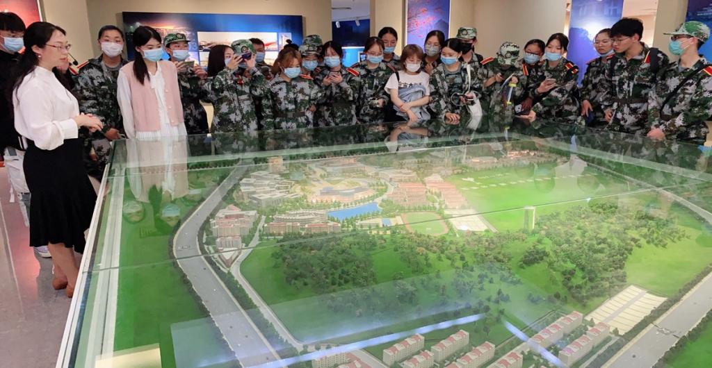李骏书记为学院2020级新生介绍学校沙盘全景