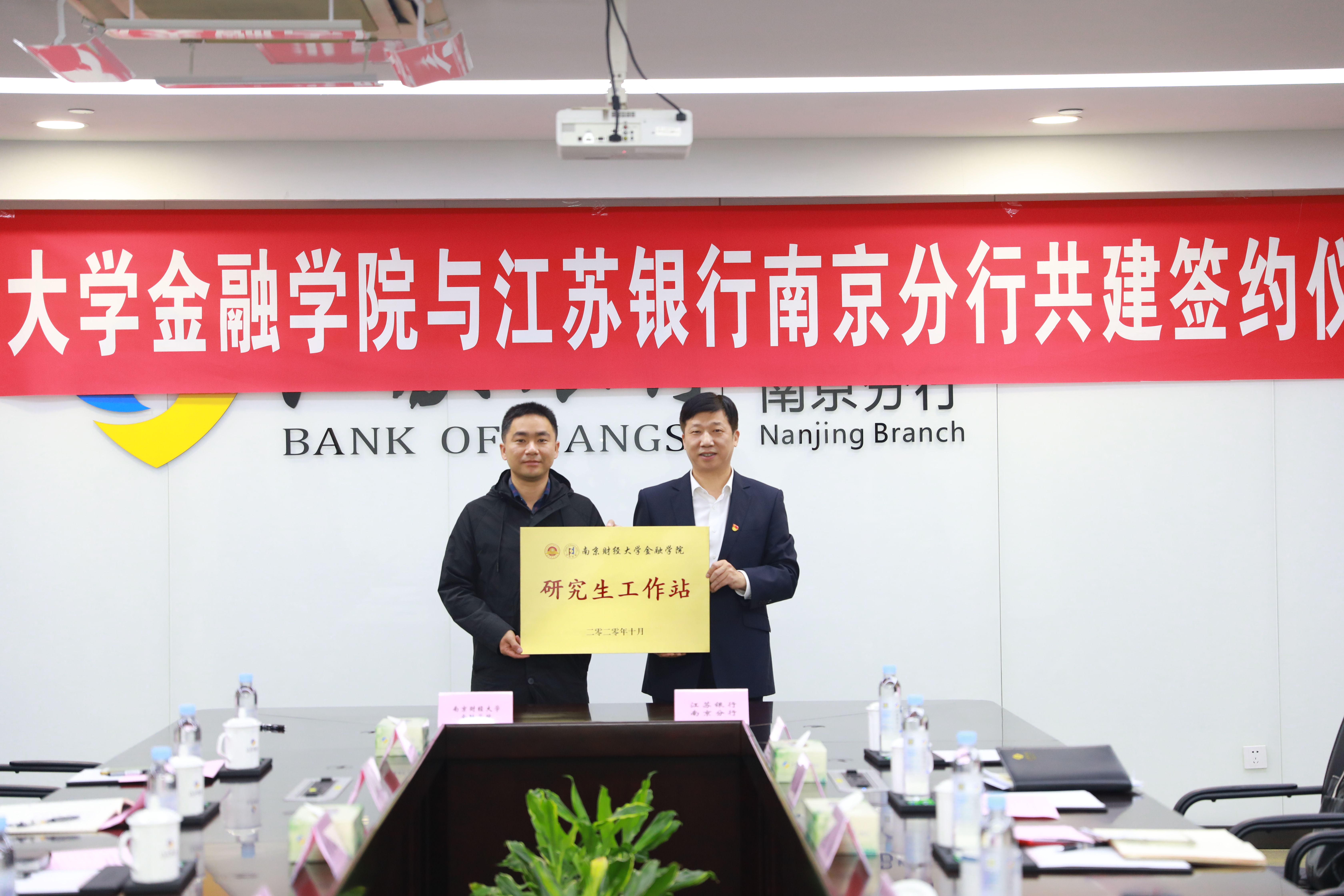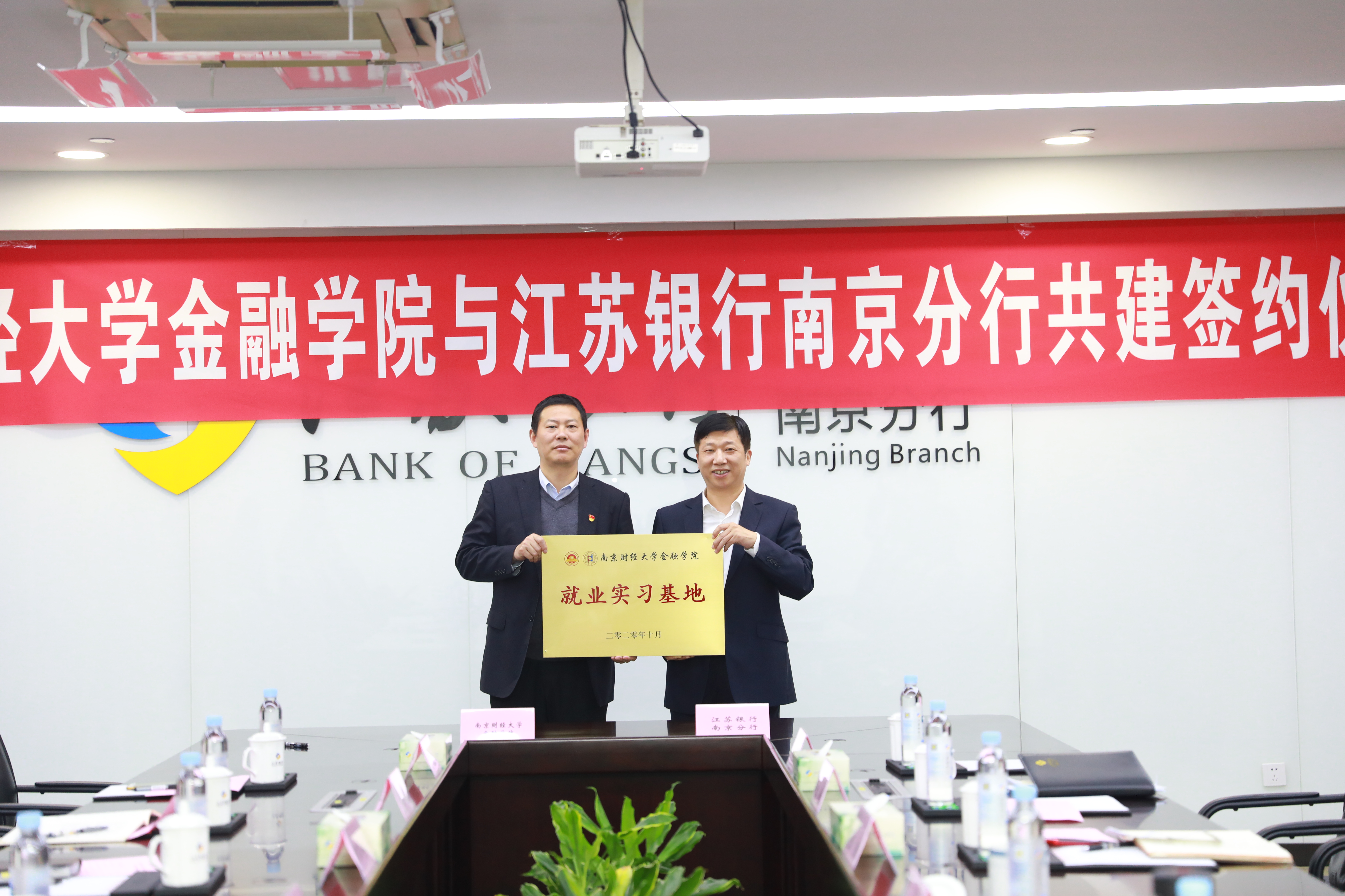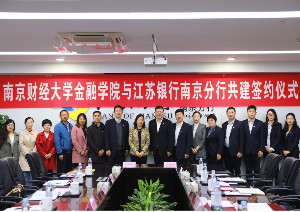10月28日下午,金融学院与江苏银行南京分行开展全面共建活动,签订《党建共建协议书》《就业实习基地协议书》及《研究生工作站协议书》,金融学院党委书记李玉琴、党委副书记章冬斌、副院长姚定俊,江苏银行南京分行党委书记、行长沈晓驰及领导班子成员出席了此次签约仪式。