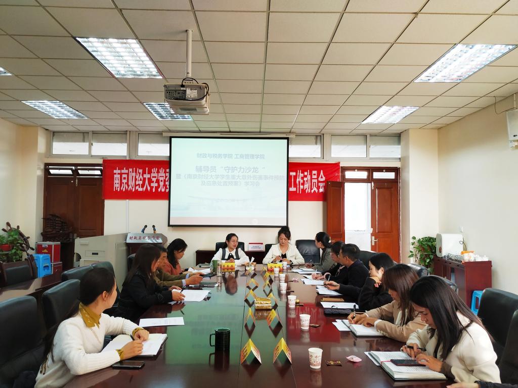 为切实加强bat365辅导员队伍建设,提升辅导员队伍专业化、职业化水平,为辅导员提供探讨工作、分享经验的平台,不断提高辅导员队伍的工作能力和业务水平,11月9日下午,财政与税务学院、工商管理学院在仙林校区德经楼408会议室联合开展辅导员“守护力沙龙”暨《bat365官方网站学生重大意外伤害事件预防及应急处置预案》学习会。财政与税务学院党委副书记李慕原、工商管理学院院长助理全真真及两院全体辅导员、学工人员参加活动。活动由李慕原副书记主持。