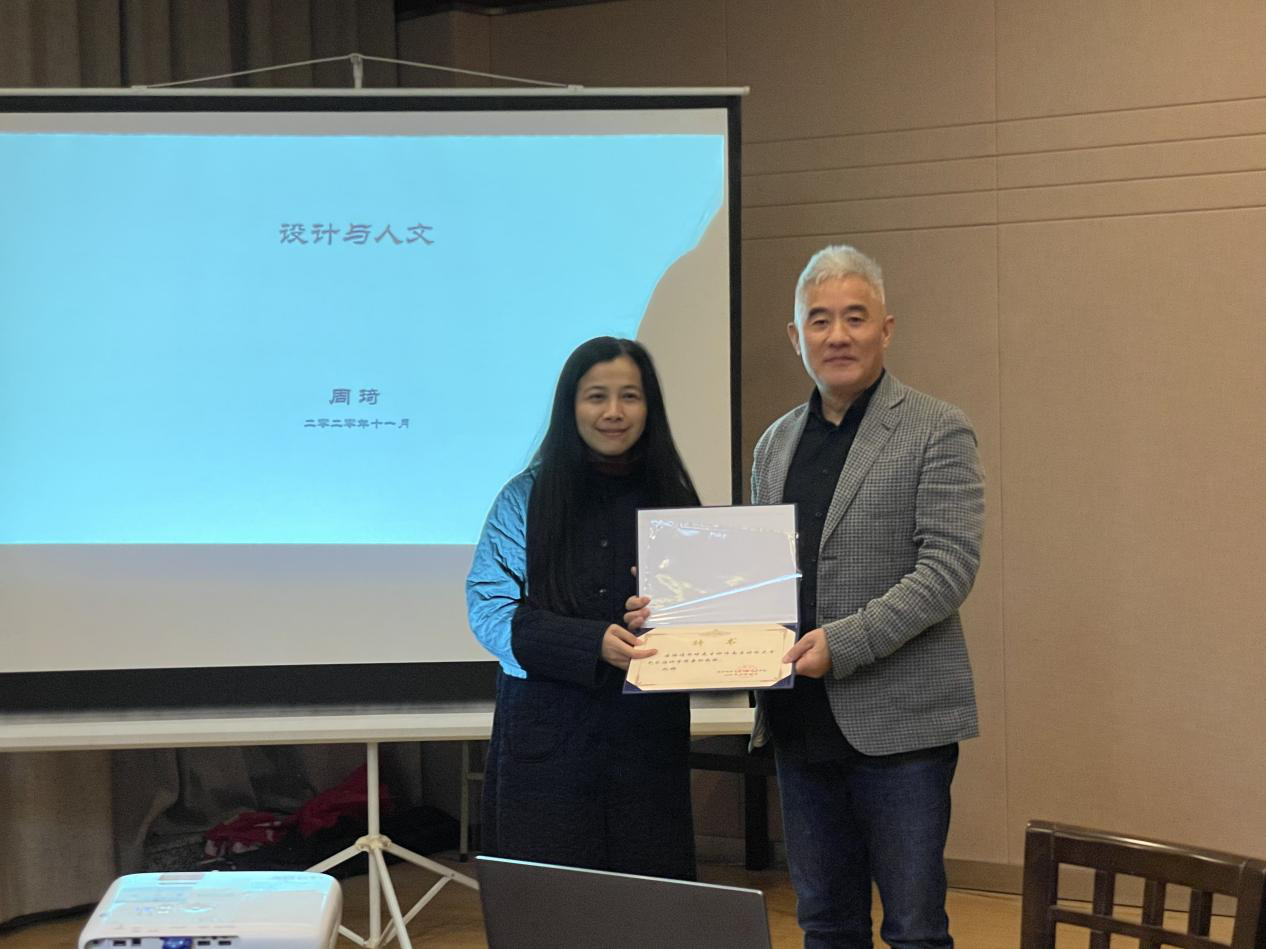 艺术设计学院院长丁蕾为周琦教授颁发兼职教授聘