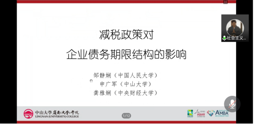 12月16日晚,应财政与税务学院、公共财政研究中心邀请,中山大学岭南学院副教授、硕士生导师申广军通过腾讯会议开展了题为“减税政策对企业债务期限结构的影响”的学术讲座。学院部分教师和全体硕士研究生聆听讲座。讲座由财政与税务学院院长朱军主持。