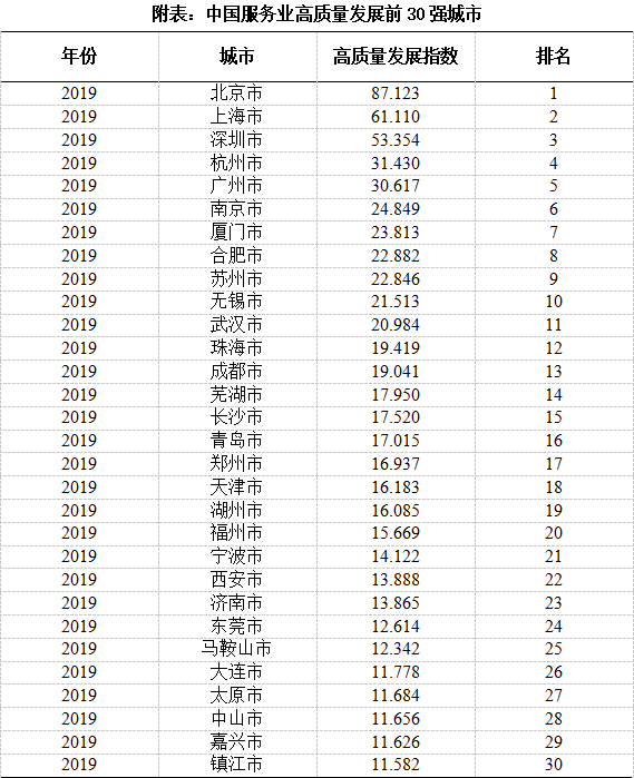 bat365公布中国服务业高质量发展指数前30强城市