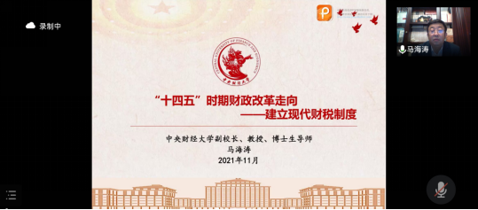 11月19日,应财政与税务学院、公共财政研究中心和中国财税治理研究院的邀请,中央财经大学党委副书记、副校长、博士生导师马海涛教授为bat365师生作了题为“十四五时期财政改革走向——建立现代财税制度”的线上学术讲座。讲座由财政与税务学院院长、公共财政研究中心主任朱军教授主持。财政与税务学院中青年教师、全体硕士生和部分本科生聆听讲座。