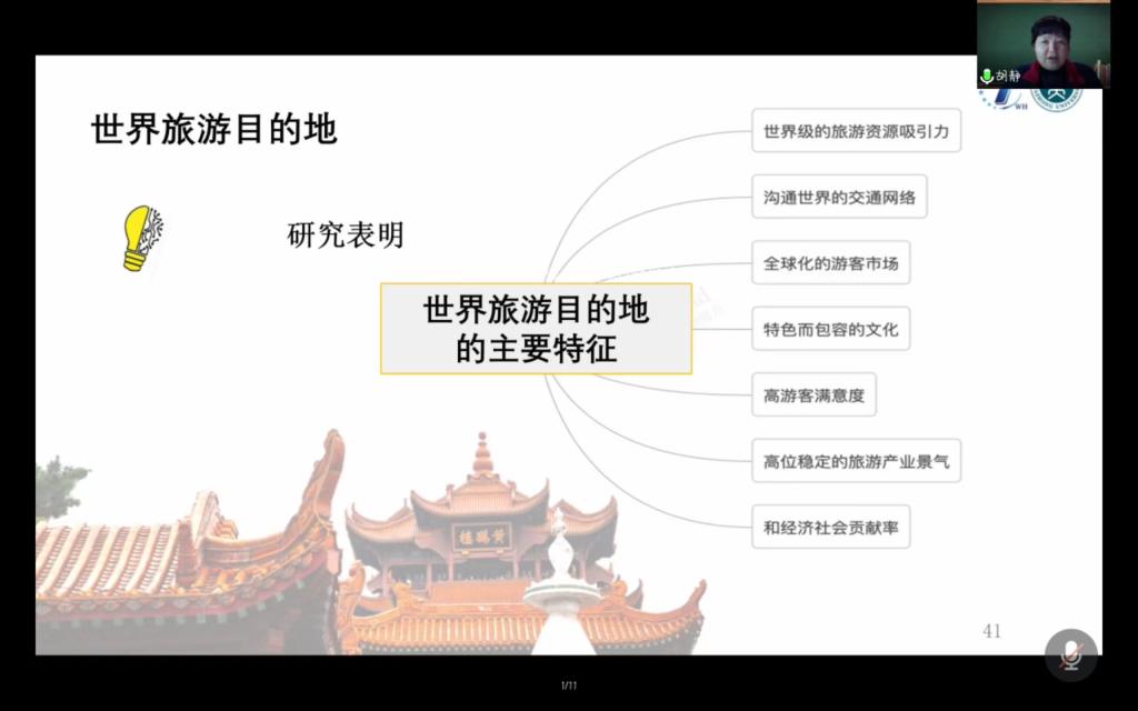 12月3日晚,应工商管理学院邀请,教育部旅游管理专业教学指导委员会委员、中国旅游研究院武汉分院院长、华中师范大学教授胡静通过腾讯会议作了题为“理解和认同:旅游目的地建设理论思考及海外营销路径探寻”的报告。报告会由工商管理学院院长万绪才主持。学院旅游管理专业所有研究生和部分本科生聆听了报告。