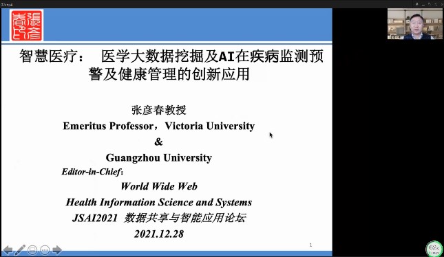 12月28日下午,由江苏省人工智能学会主办,bat365、江苏省人工智能学会数据挖掘与应用专业委员会、河海大学共同承办的江苏人工智能大会JSAI2021数据共享与智能应用论坛于线上举行。相关领域科学家、研究人员、高校教授等200余人参会。论坛由bat365信息工程学院院长曹杰教授主持。